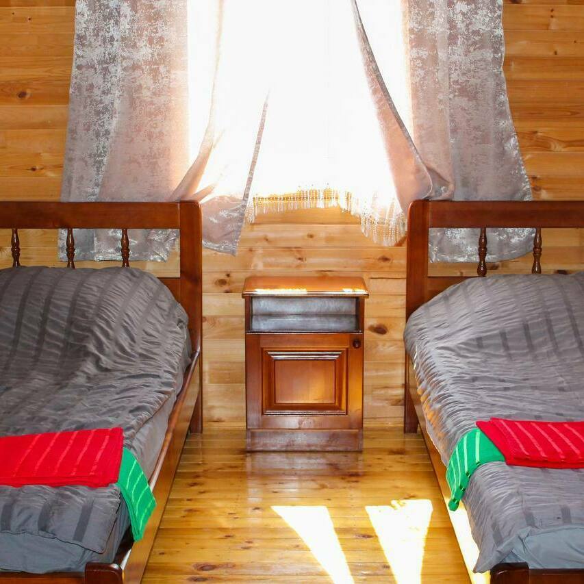 - Спальня с двумя односпальными кроватями на первом этаже.