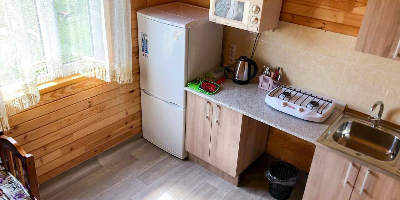 На территории 30 соток около хвойно-лиственного леса расположены 4 пятиместных полностью меблированных двухэтажных домов со всеми удобствами. К вашим услугам несколько артезианских скважин с кристально чистой водой, мангал и уютные столики для теплых вечеров. Наши комфортные дома со всеми удобствами — собственная кухня и бесплатная парковка на территории.
